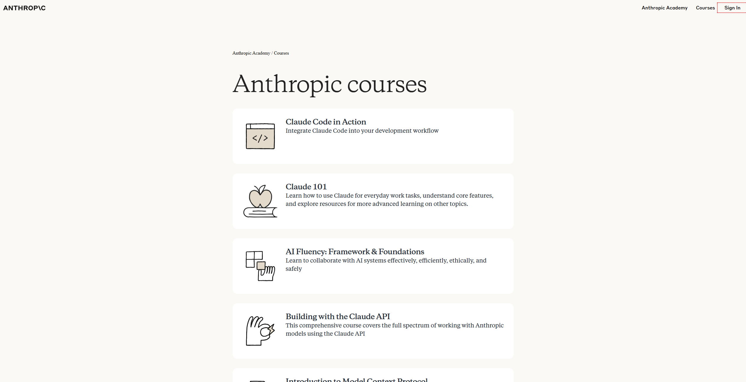 Không cần tài khoản Claude. Không cần gói trả phí. Chứng chỉ được cấp sau khi hoàn thành từng khóa.