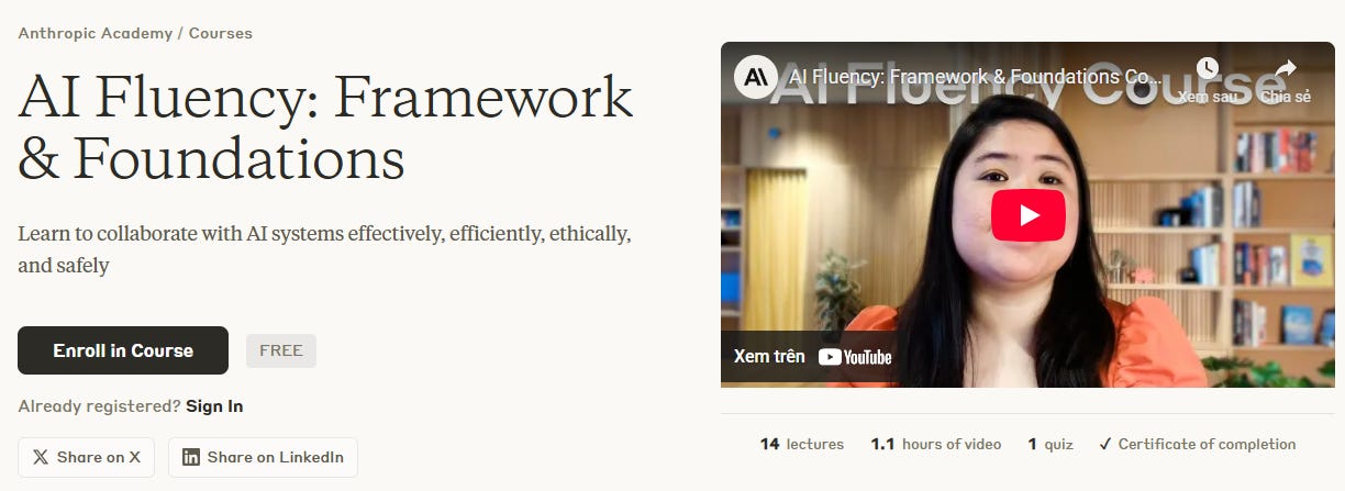 Đây là bộ học liệu AI chính thức từ công ty tạo ra Claude. Không cần trả tiền, không cần tài khoản Claude, và nội dung được cập nhật trực tiếp bởi đội ngũ xây dựng sản phẩm.