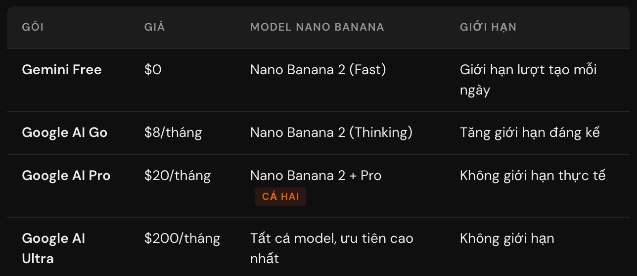 So sánh các gói Gemini để dùng Nano Banana