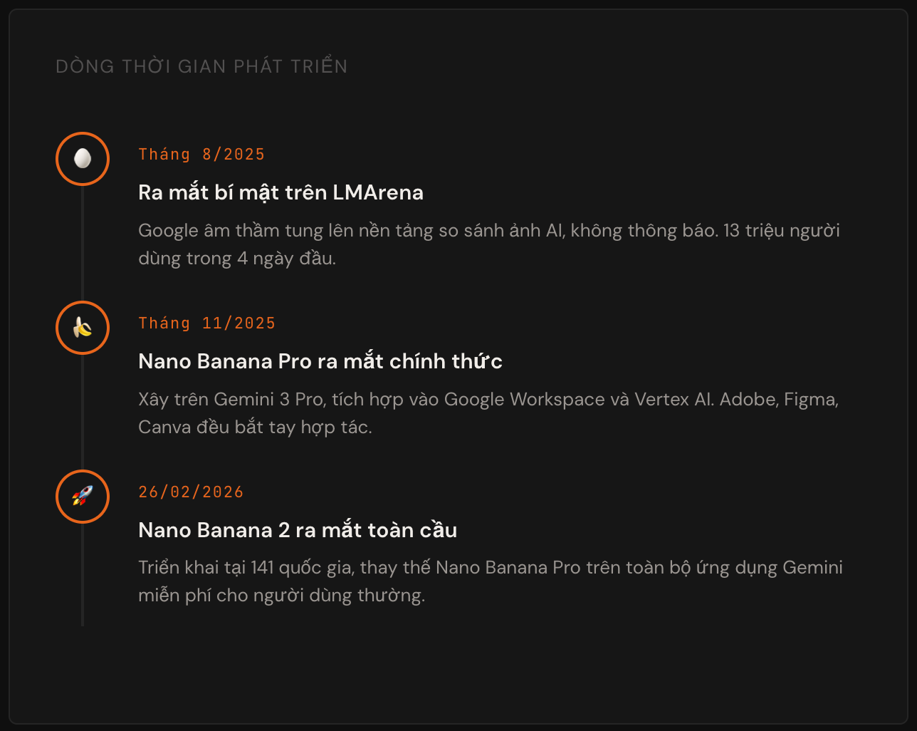 Tháng 8/2025, Google âm thầm tung Nano Banana lên một trang web so sánh ảnh AI tên là LMArena, không hề có thông báo và cũng không có sự kiện ra mắt lớn.