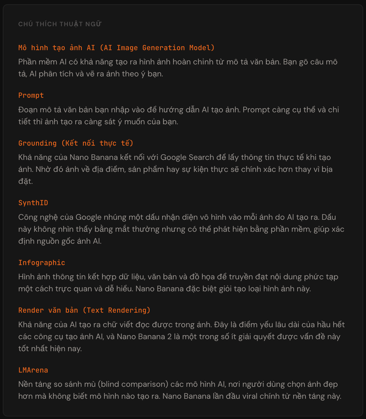 Nano Banana (tên kỹ thuật: Gemini 3.1 Flash Image) là mô hình tạo ảnh và chỉnh sửa ảnh AI của Google DeepMind. Điều khiến nó khác biệt là khả năng kéo dữ liệu thực tế từ Google Search theo thời gian thực, cho phép tạo ra hình ảnh chính xác về địa điểm, thương hiệu, sự kiện và thông tin cập nhật nhất thế giới.