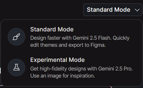 Google Stitch hoạt động theo hai chế độ riêng biệt, mỗi chế độ sử dụng một mô hình AI khác nhau và phù hợp với các mục đích sử dụng khác nhau.