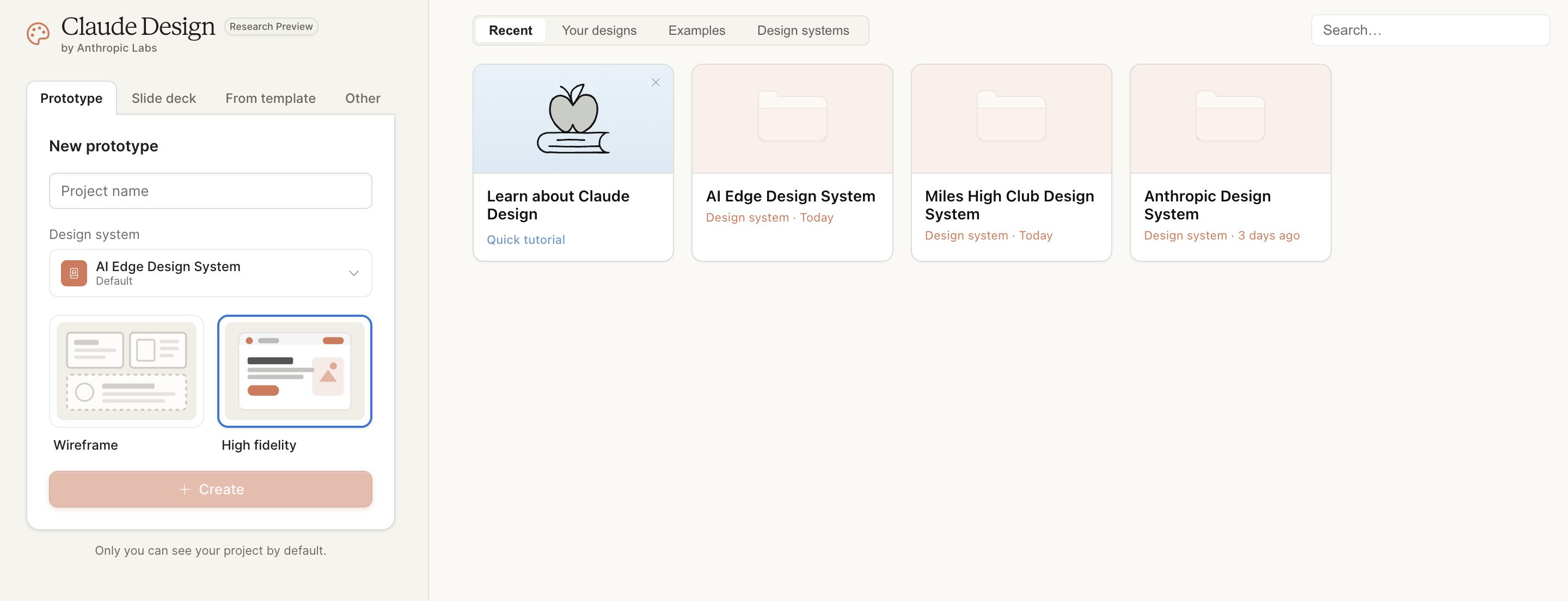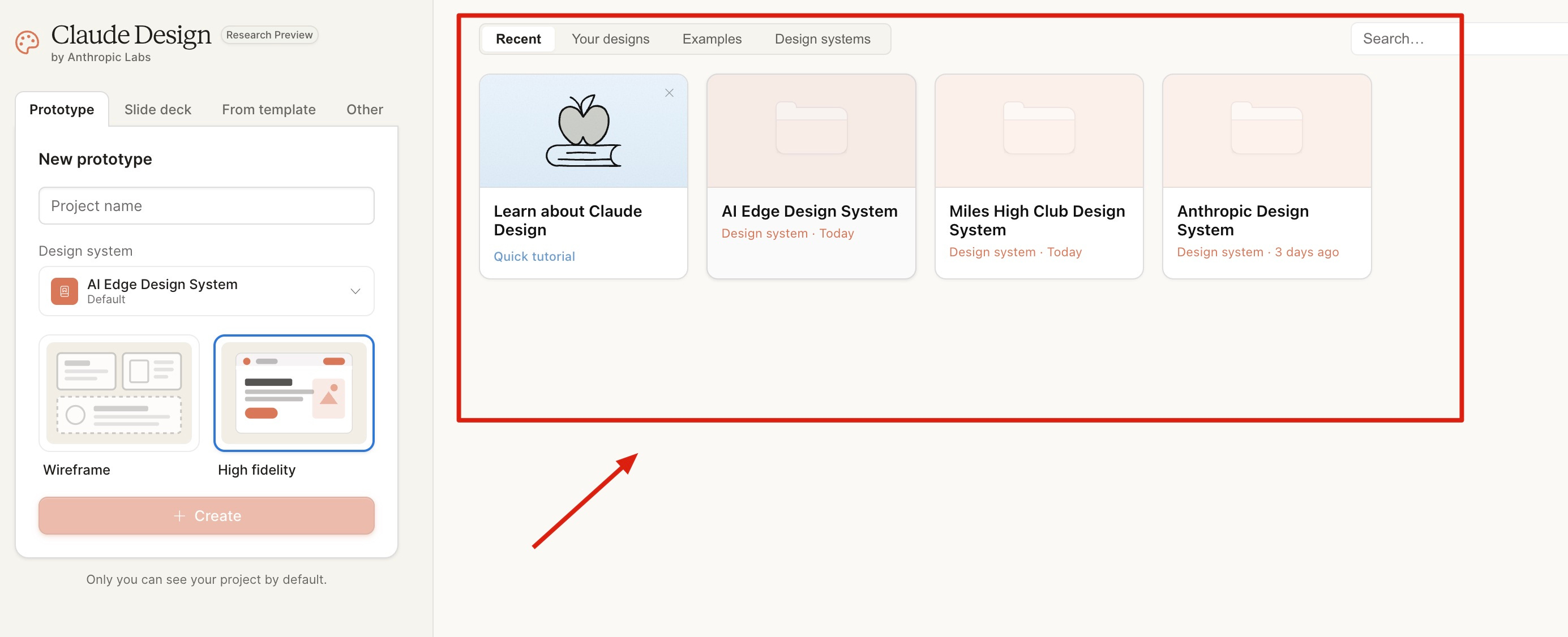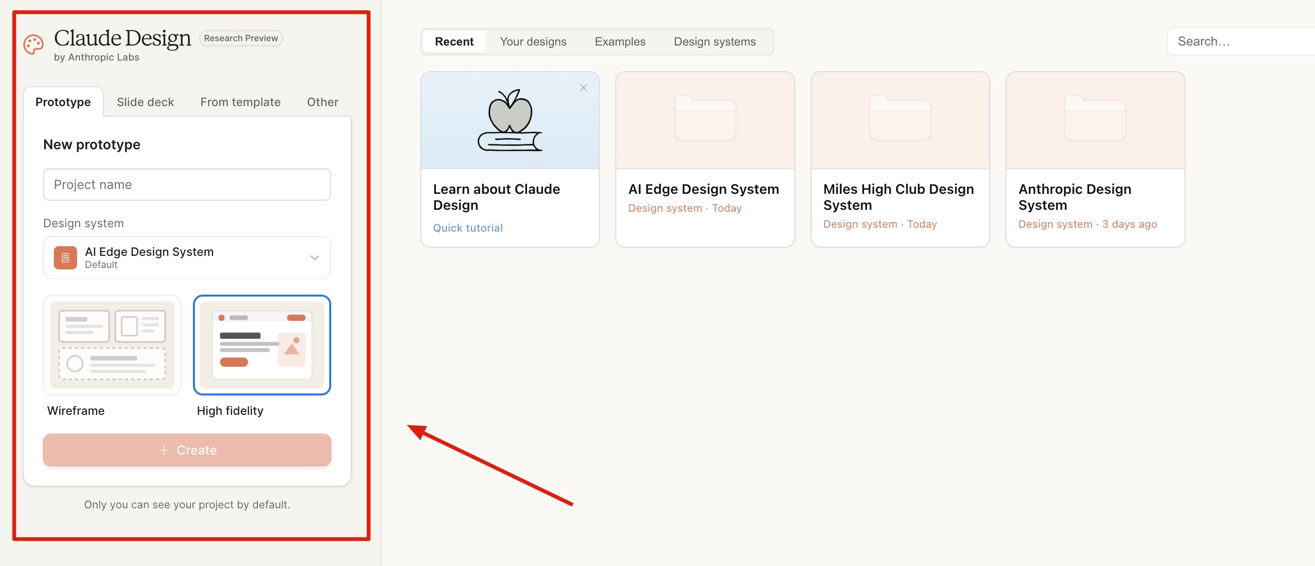 Giao diện Claude Design được chia thành hai phần rõ ràng.