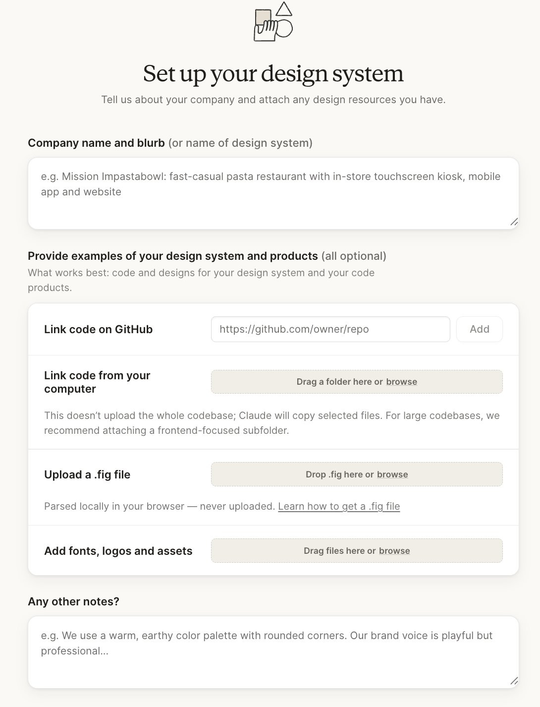 Mẹo mình hay dùng: Tạo một Claude Skill chứa toàn bộ brand guidelines (màu sắc, font, tone), rồi paste nguyên nội dung đó vào phần Notes của Design System. Claude Design sẽ “nhớ bài” một lần, dùng mãi mãi.