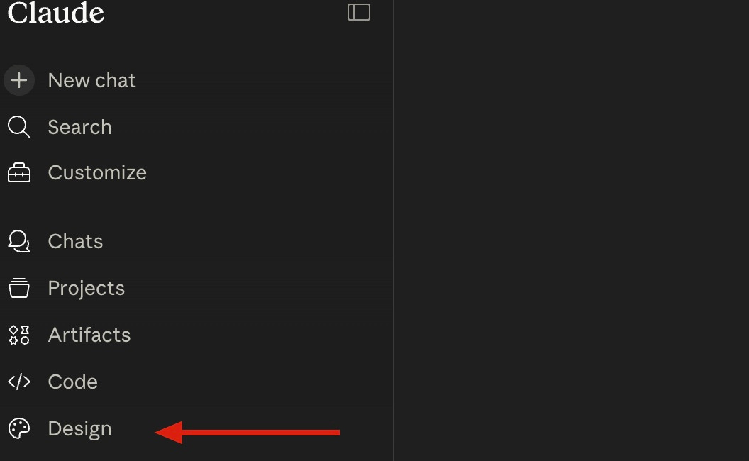 Mở Claude trên web, nhìn vào sidebar trái, tìm mục Design (có icon bảng màu).
