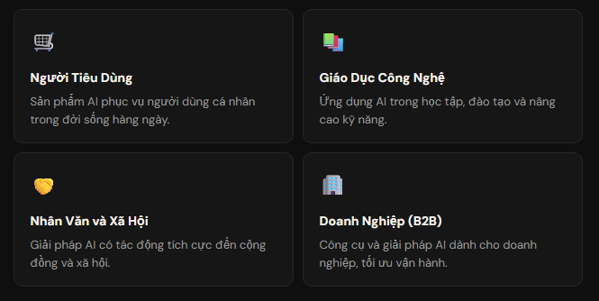 Mỗi nhóm đăng ký tham gia sẽ chọn một hạng mục (track) để xây dự án. Đây là bốn hạng mục chính: