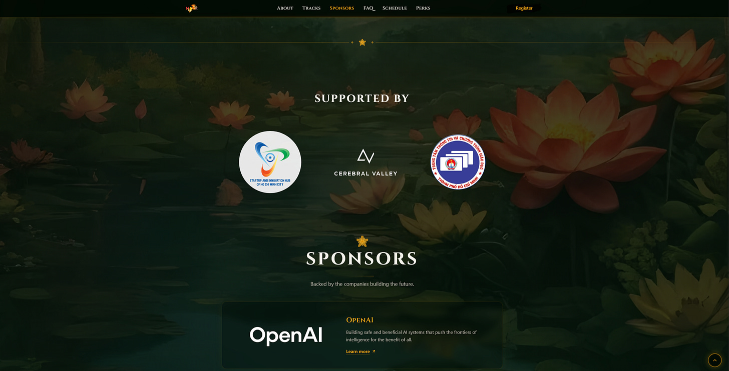 Mình biết về LotusHacks từ mấy tuần trước khi thấy tên OpenAI trong danh sách nhà tài trợ và dừng lại đọc kỹ hơn.