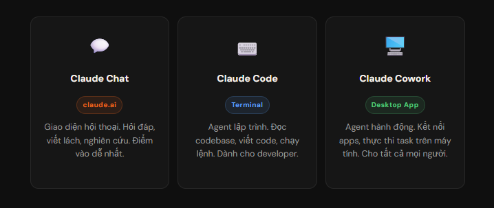Phân biệt 3 loại Claude AI phổ biến (Claude Chat, Claude Code, Claude Cowork)