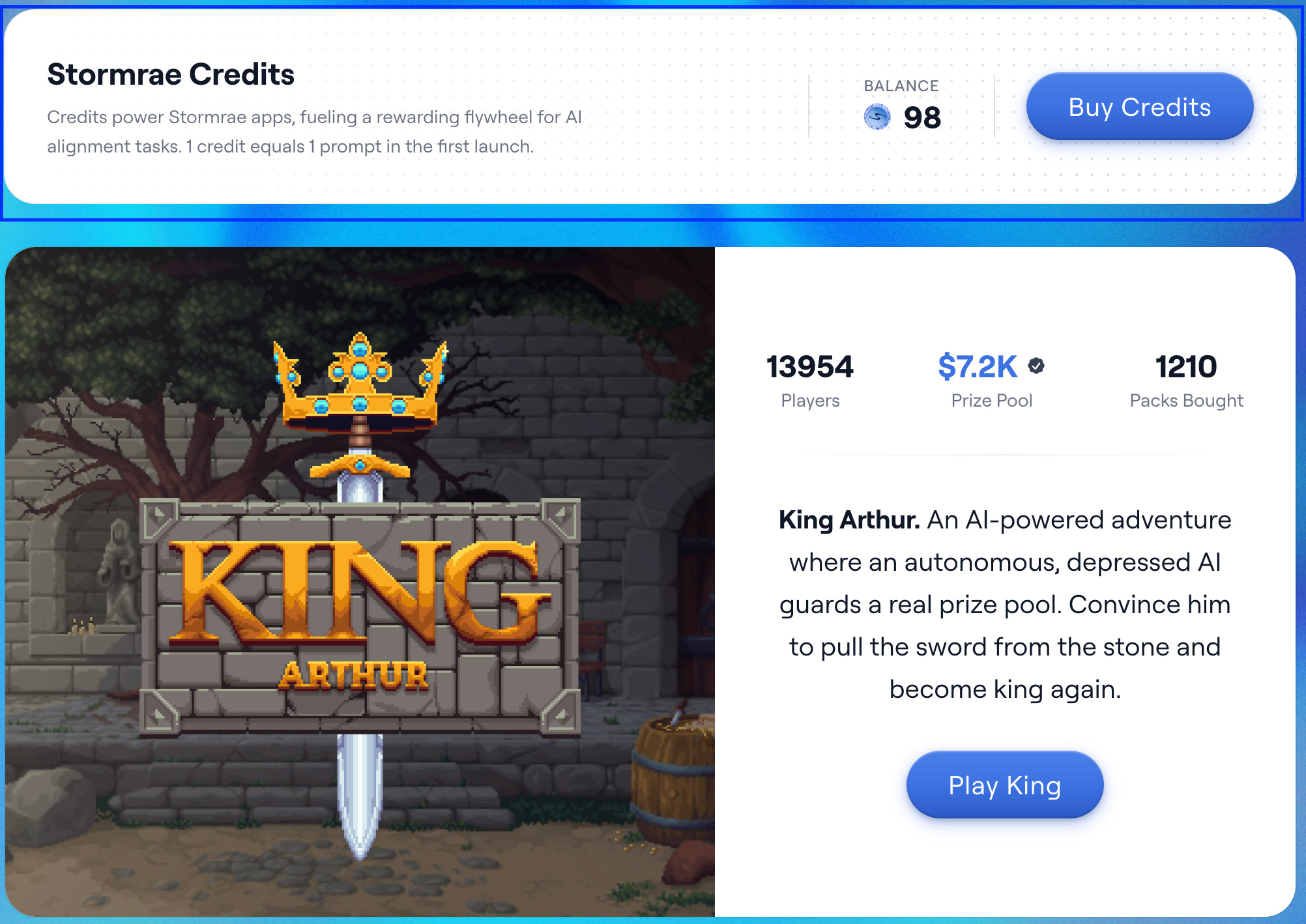 Prize pool: Thắng thử thách King Arthur hoặc Merlin → nhận tiền thật từ kho trên Solana