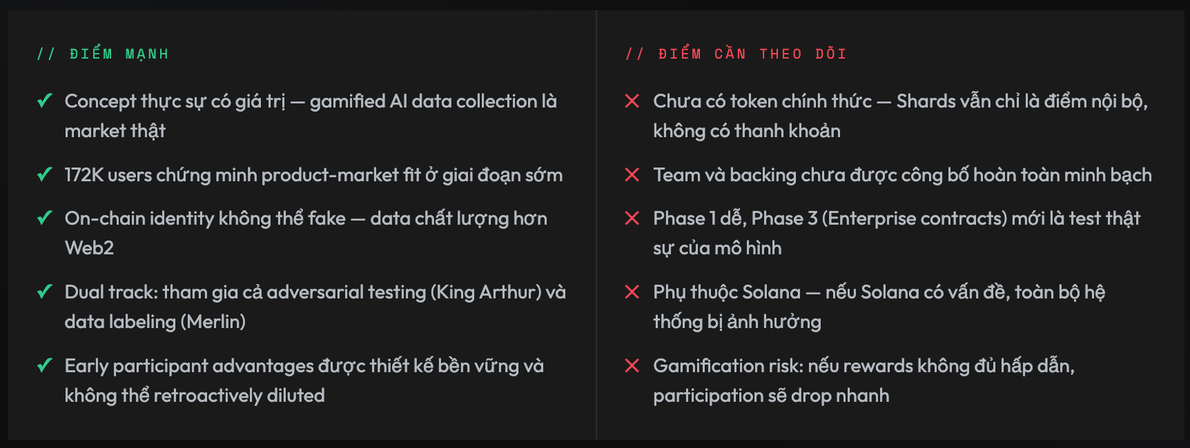 Điều mình ấn tượng nhất là tính nhất quán giữa các layers của Portal: Waitlist → Guild rank → Shards → Echoes → Gated Access → Credits → AI Products. Không layer nào thừa. Mỗi cơ chế phục vụ một mục tiêu cụ thể trong flywheel tổng thể. Đây là product thinking tốt, không phải hype.